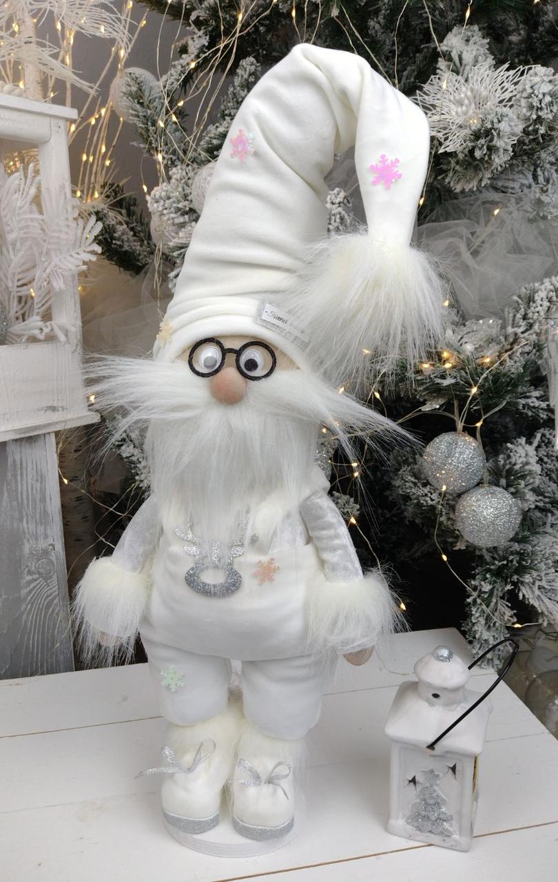 Санта 65см білий. Гном скандинавський в окулярах. Різдряний ельф Скандинавський, санта клаус новорічний, іграшка